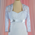 Loodusvalgest pitsist pidulik jakk. Pikkade varrukatega jakk on heaks täienduseks pidulikule garderoobile või pulmakleidile.