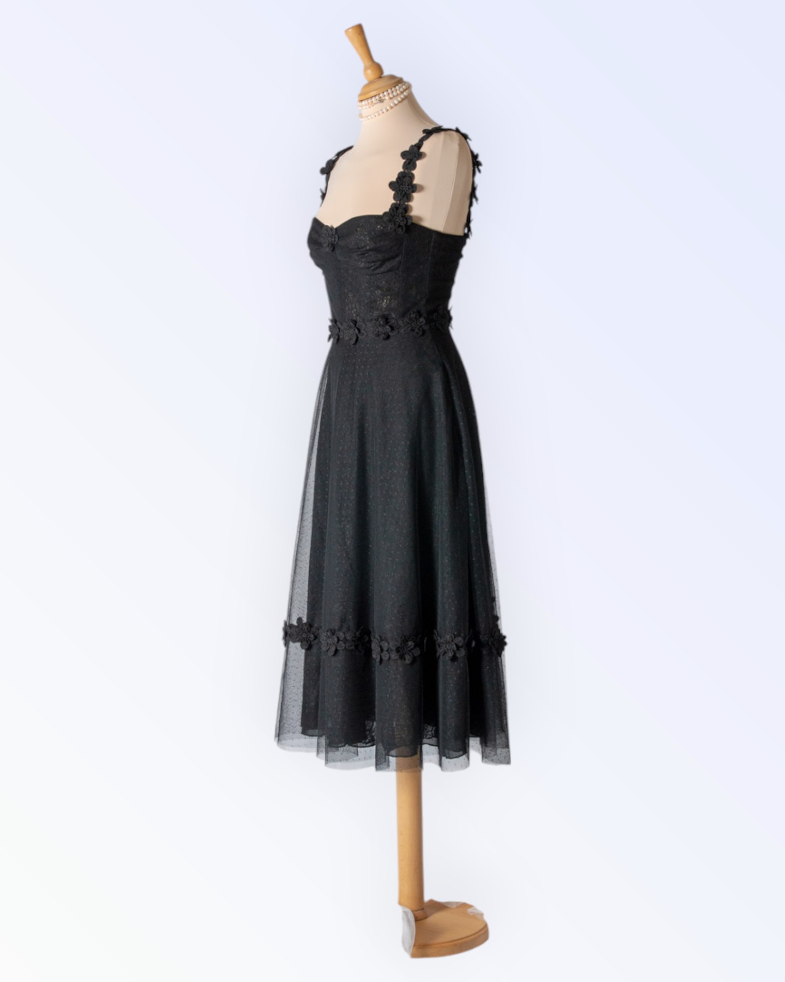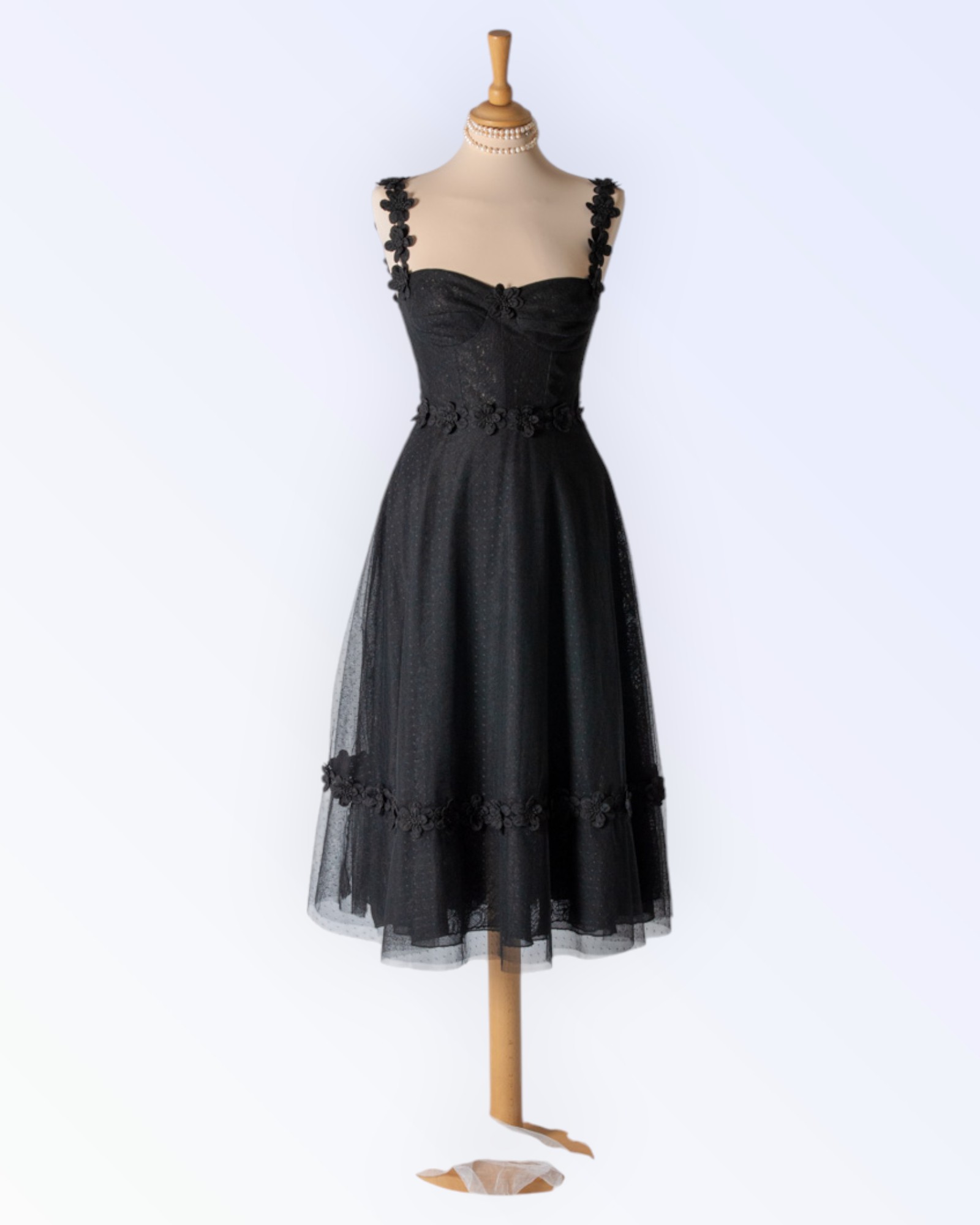 Täpilisest tüllist tutu-seelikuga kleit. Romantilisust lisavad lillepitsist äärised ja õlapaelad. Ainueksemplar!