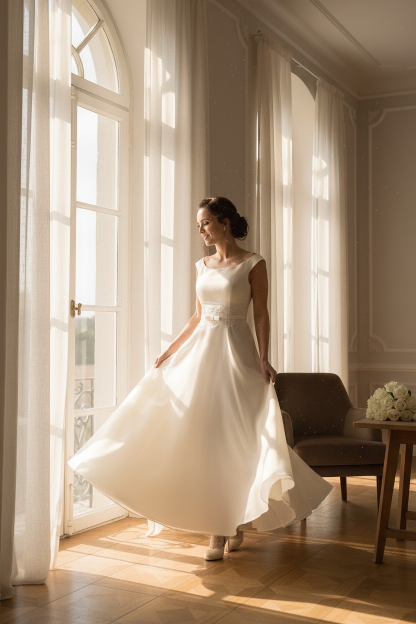 Puudritooni organzast vintage-stiilis kleit. Sobib ka pulmakleidiks.