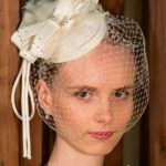 Loodusvalge prantsuse loor sulgede ja lilledega.