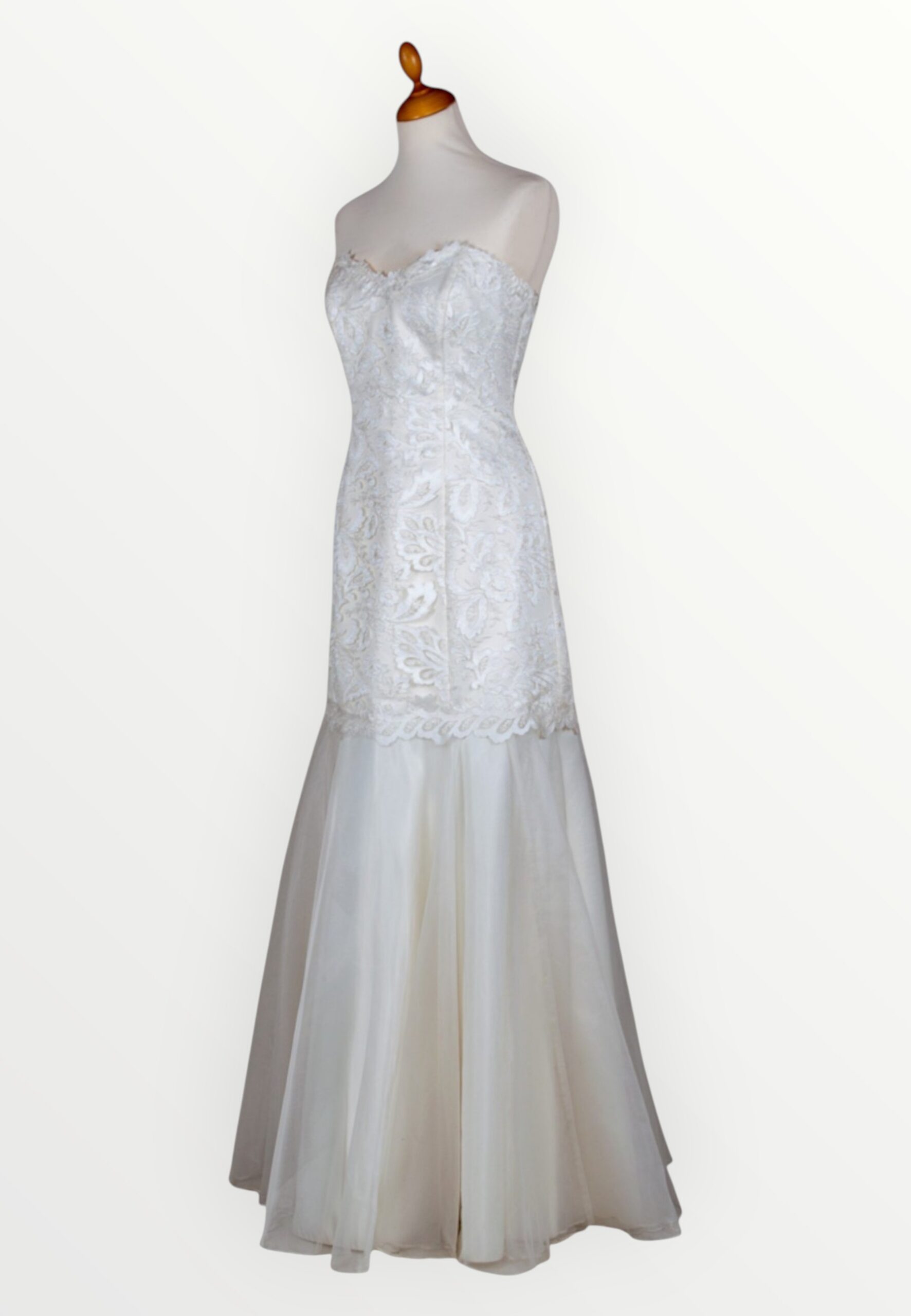Eksklusiivsest laser-lõigatud pitsist merineitsi-stiilis pruutkleit.