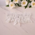 Õhukesest mustast pitsist sukapael. Kaunistatud ripspaelast lipsukese ja klaashelmega.