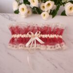 Loodusvalgest pitsist sukapael on kaunistatud helesinisest satiinpaelast käsitsi valmistatud roosi ja  lintidega.