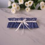 Loodusvalgest pitsist sukapael on kaunistatud helesinisest satiinpaelast käsitsi valmistatud roosi ja  lintidega.