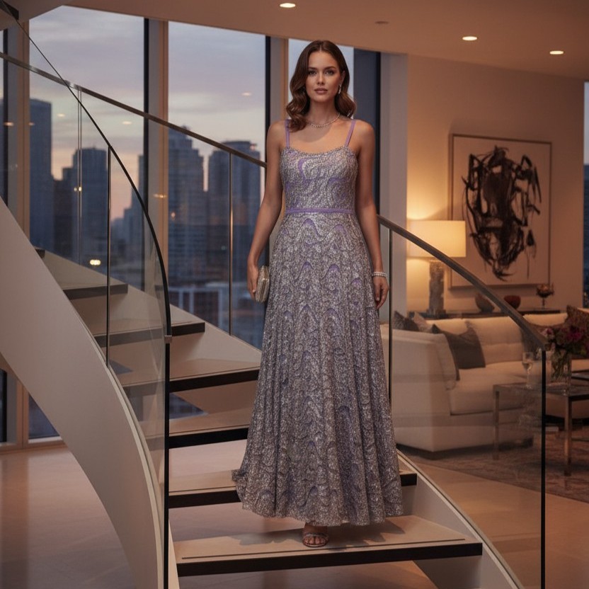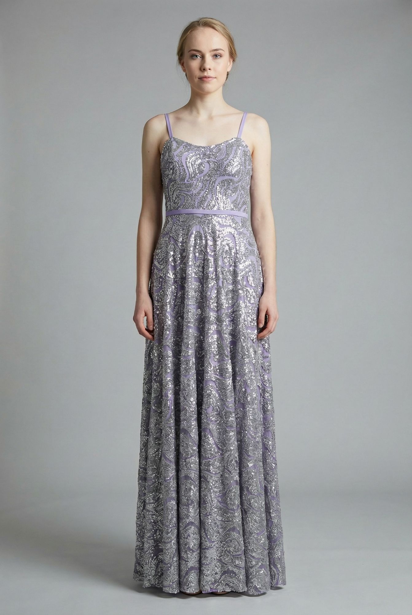Silver-gray sequined evening dress